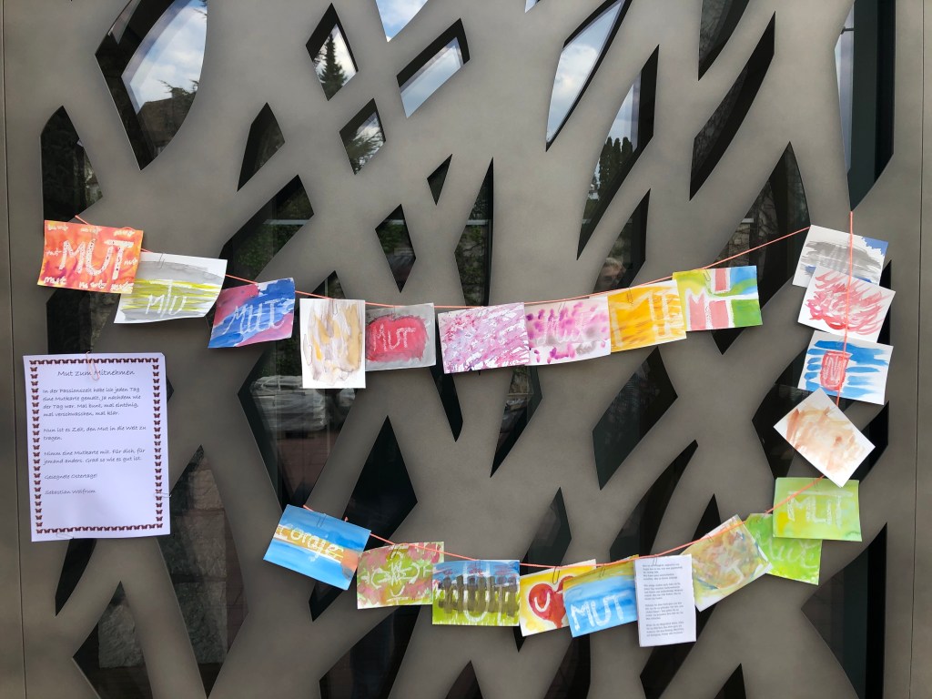 In der Passionszeit 2020 habe ich mit vielen anderen #mutinfarbe #mutteilen geübt. Jeden Tag habe ich mit weißer Kreide „Mut“ auf eine Karte geschrieben und dann mit Farbe überzogen. Die Karten erzählen meinen ganz persönlichen Weg durch die Passionszeit.